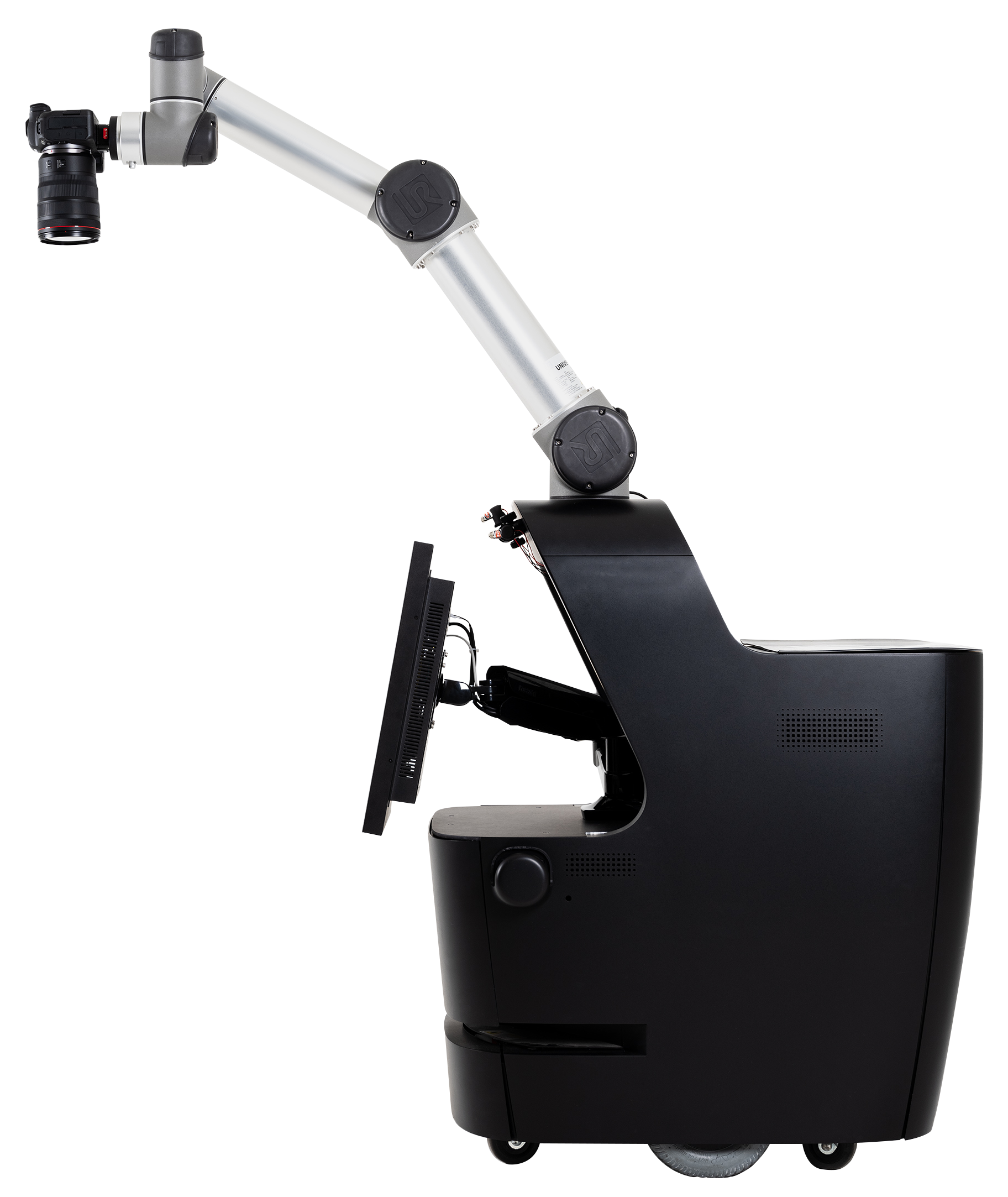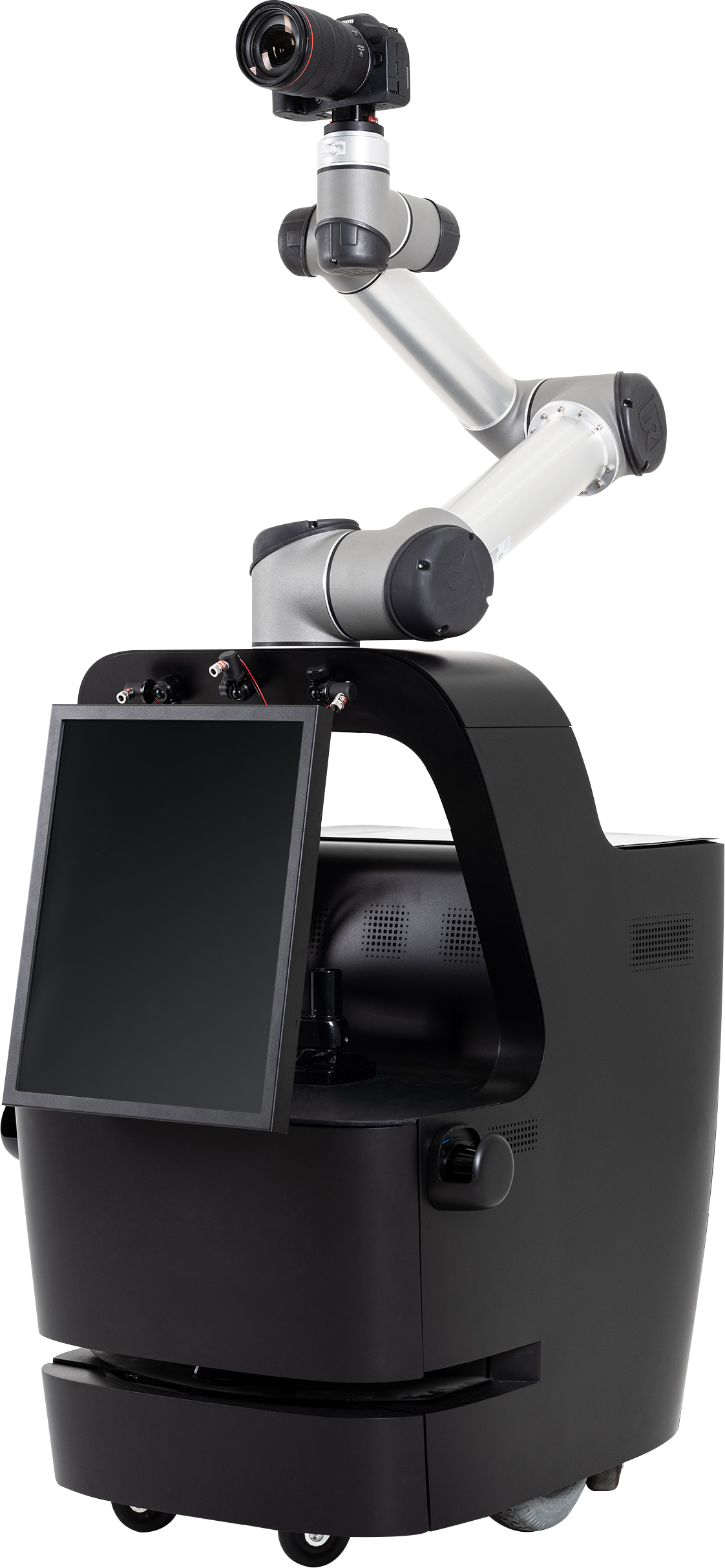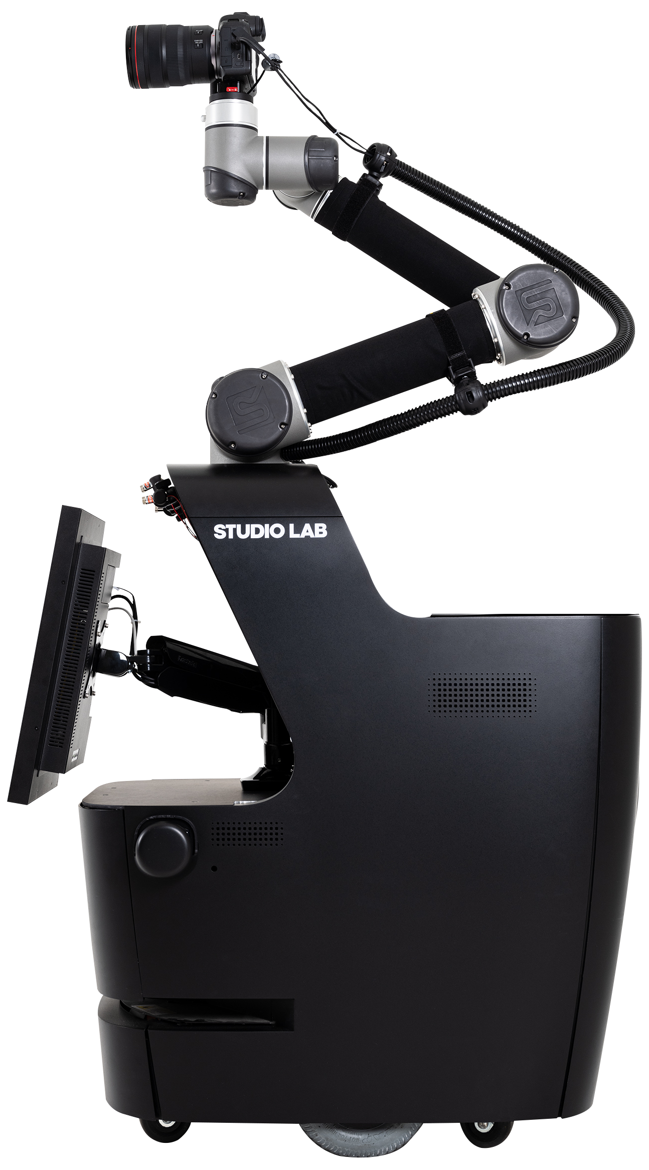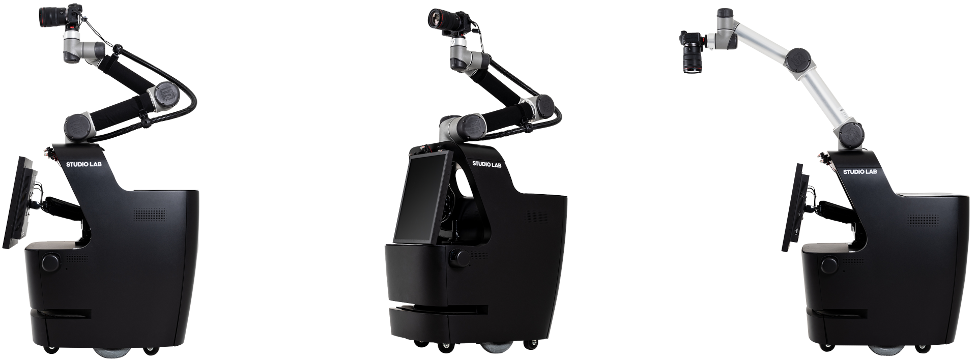 The robot drives itself to the shooting point and movesits arm freely like a photographer, enabling diverse compositions.